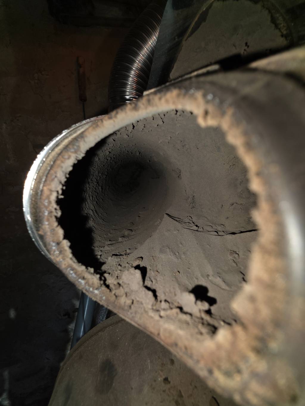 Lors de notre contrôle, le conduit de fumée présentait un encrassement important, avec des dépôts conséquents et certaines zones proches de l’obstruction. Nous avons réalisé un ramonage complet du conduit, indispensable pour garantir un tirage optimal et une sécurité maximale de l’installation.
