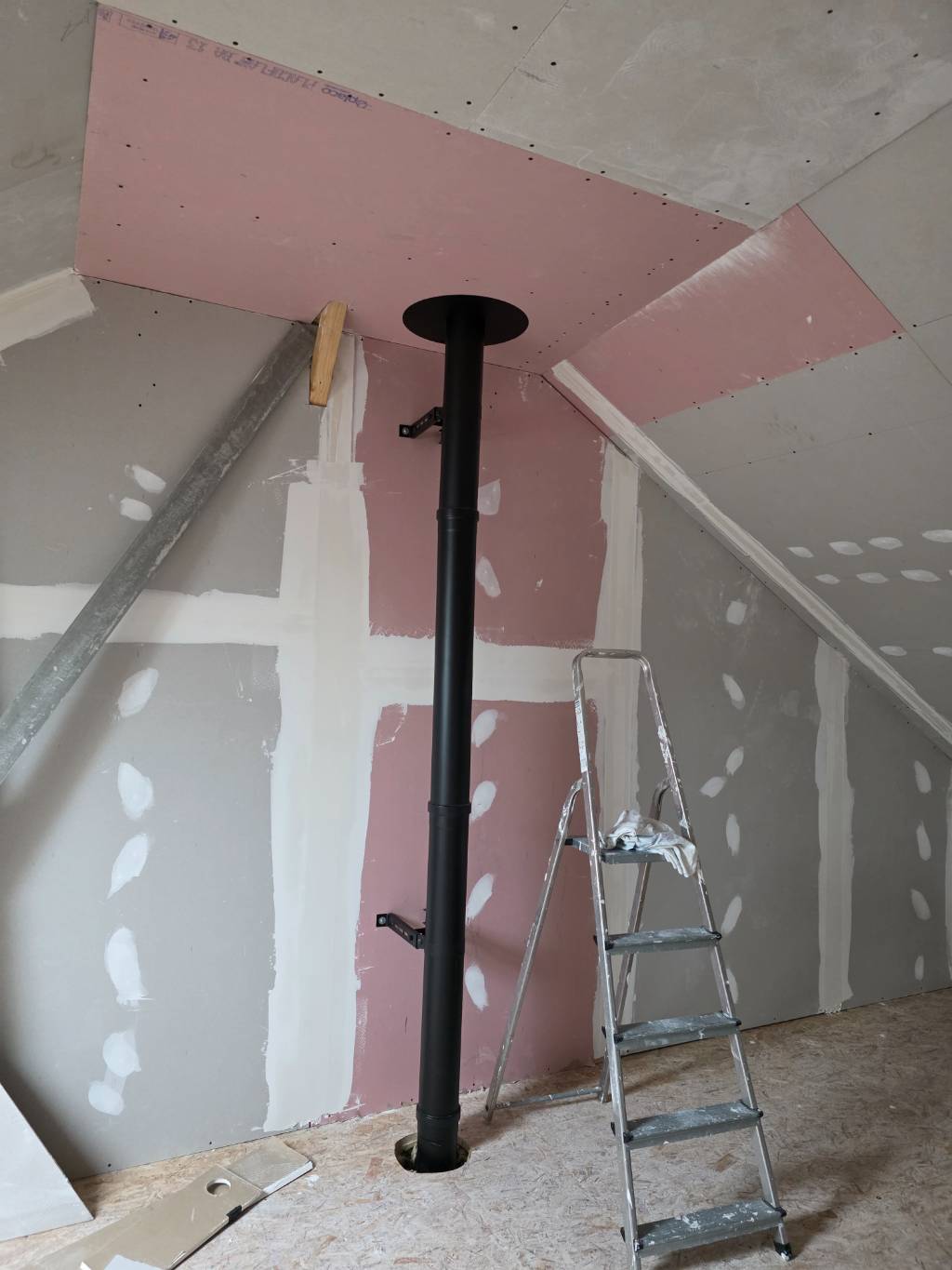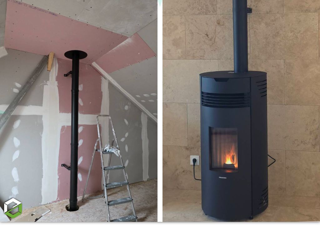 - Le passage du conduit de fumée dans les pièces à l’étage, avec perçage contrôlé des planchers et cloisons